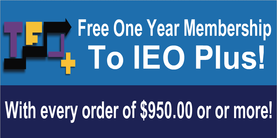 From now until April 1st, if you make a purchase of $950.00 or more, you’ll get a free one year membership to IEO Plus! An IEO Plus membership is a great way to save money and take advantage of many IEO benefits. As a member, you’ll enjoy 10% off all IEO products, free shipping from our bookstore, free access to courses, and much more!